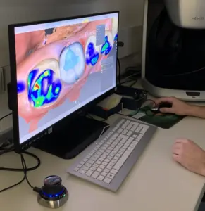 Diese Woche wurde uns die neue Primescan von Sirona/Dentsply vorgestellt. Mit dieser Technologie kann man abdruckfrei Zahnersatz und jetzt sogar auch zum Beispiel Aufbissschienen herstellen. Es sind jetzt gesamte Scans eines Kiefers in kurzer Zeit möglich. Der neue Scanner arbeitet wesentlich schneller als die ältere Variante. Auch wurde die Präzision noch einmal erhöht.