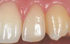 Missgebildeter seitlicher Schneidezahn (Zapfenzahn) nach dem Aufbringen einer keramischen Verblendschale
